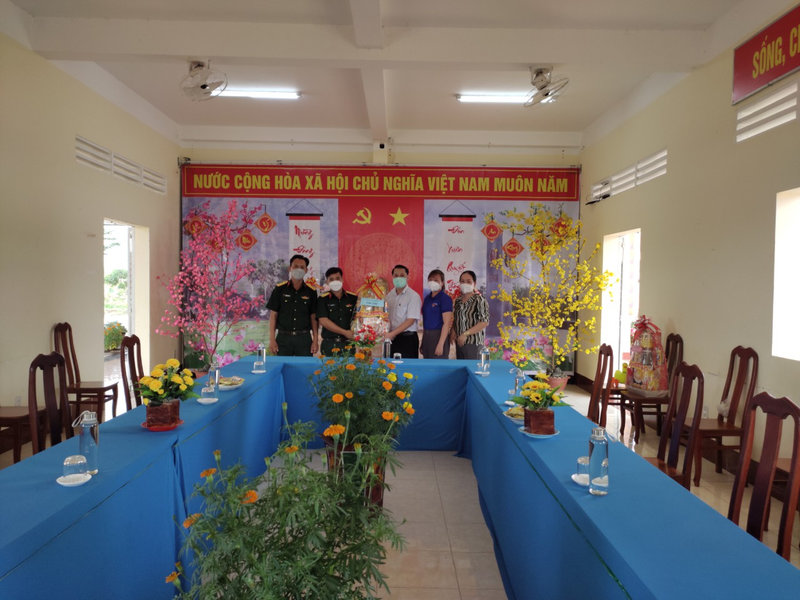 Đoàn đã thăm hỏi động viên, chúc mừng năm mới đến các cán bộ, chiến sỹ trong các đơn vị lực lượng vũ trang và các đồng chí Ủy viên Ban Chấp hành Đoàn TNCS Hồ Chí Minh các xã trên địa bàn huyện, chúc các cán bộ, chiến sỹ và gia đình đón tết vui vẻ, an khang thịnh vượng, đồng thời trao tặng 17 phần quà, tổng trị giá các phần quà là 8,5 triệu đồng.