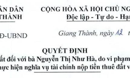 Quyết định thu hồi đất đối với bà Nguyễn Thị Như Hà