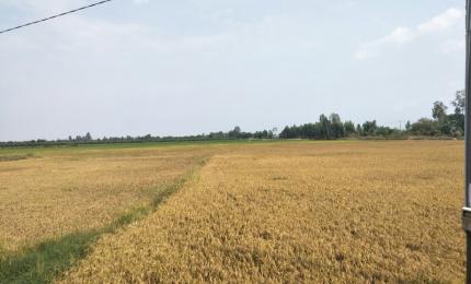 Cánh đồng lúa đang thu hoạch của huyện Giang Thành