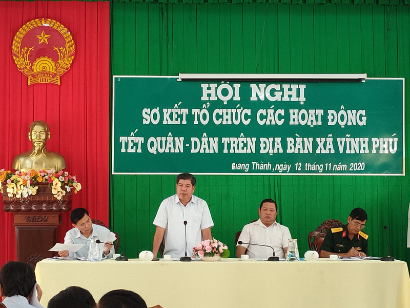Phát biểu chỉ đạo, đ/c Nguyễn Thanh Hà, chủ tịch UBND huyện – Trưởng Ban chỉ đạo tết quân – dân huyện yều cầu: tiếp tục tăng cường công tác tuyên truyền để người dân hiểu được mục đích, ý nghĩa của tết quân – dân đang thực hiện trên địa bàn xã Vĩnh Phú. Các ngành, các cấp thực hiện tốt kế hoạch, nhiệm vụ đề ra./.