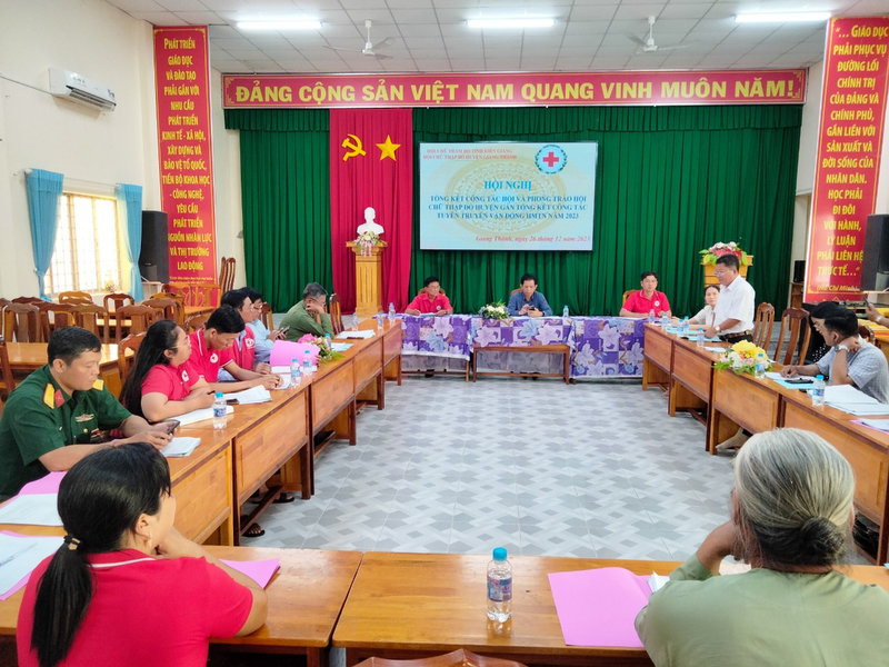 Trong năm 2023, Hội chữ thập đỏ huyện đã thực hiện tốt chương trình công tác Hội và phong trào chữ thập đỏ thường xuyên và phối hợp chặt chẽ với các ban, ngành, đoàn thể huyện trong thực hiện các phong trào công tác. Hưởng ứng phong trào “Tết Nhân Ái” xuân Quý Mão năm 2023, Hội phối hợp các ban ngành vận động các mạnh thường quân, các nhà hảo tâm hỗ trợ hộ nghèo, hộ cận nghèo, hộ có hoàn cảnh khó khăn 1.207 suất quà trị giá trên 365 triệu đồng. Tiếp tục duy trì Cuộc vận động “Mỗi tổ chức, mỗi cá nhân gắn với một địa chỉ nhân đạo”, Hội đã vận động duy trì trợ giúp được 60 địa chỉ nhân đạo với 600 lượt, trị giá trên 184 triệu đồng. Thực hiện Chương trình “Dinh dưỡng cho trẻ em nghèo, khuyết tật”, Hội CTĐ huyện vận động quỹ tài năng việt trao tặng sữa cho trẻ em nghèo, khuyết tật được 415 thùng sữa và 540 họp sữa dinh dưỡng trị giá trên 105 triệu đồng. Đồng thời, phối hợp nhà tài trợ hỗ trợ cho trẻ em khó khăn 30 suất, trị giá 30 triệu đồn; và 50 áo phao và 700 cuốn tập và viết cho học sinh. Thực hiện Phong trào “Cả nước chung sức xây dựng nông thôn mới”: Các cấp Hội vận động hỗ trợ xây cất mới 30 căn, sửa chữa 09 căn nhà chữ thập đỏ trị giá trên 1 tỷ triệu đồng; bắt mới 03 cây cầu, sửa chữa 02 cây cầu trị giá trên 714 triệu đồng, Sửa chữa đường trị giá 46 triệu đồng. Bên cạnh đó, Các cấp Hội trong huyện vận động các đoàn từ thiện, Nhóm từ thiện các tổ chức, cá nhân, các doanh nghiệp, ngày công và nhu yếu phẩm, tiền mặt, gạo, rau củ, và hỗ trợ quà thường xuyên, đột xuất cho các hộ nghèo, cận nghèo, hộ đặc biệt khó khăn được 12.628 lượt trợ giúp với tổng số tiền trên 1,2 tỷ đồng. Các cấp Hội trong huyện phối hợp các cơ quan, đơn vị, nhà tài trợ khám bệnh, tư vấn cấp thuốc miễn phí cho Tây Y 858 lượt người, Các phòng thuốc nam xem mạch, điều trị, châm cứu cho 132 lượt người, cấp 2.014 thang thuốc, Chuyển viện miễn phí 308 chuyến, Hỗ trợ 125 áo quan, Bếp ăn từ thiện 15.426 suất, tổng trị giá trên 656 triệu đồng. Trong năm 2023, Hội đã phối hợp với Khoa huyết học tỉnh tổ chức tiếp nhận 566/563 đơn vị máu, đạt 100,53% chỉ tiêu tỉnh giao.