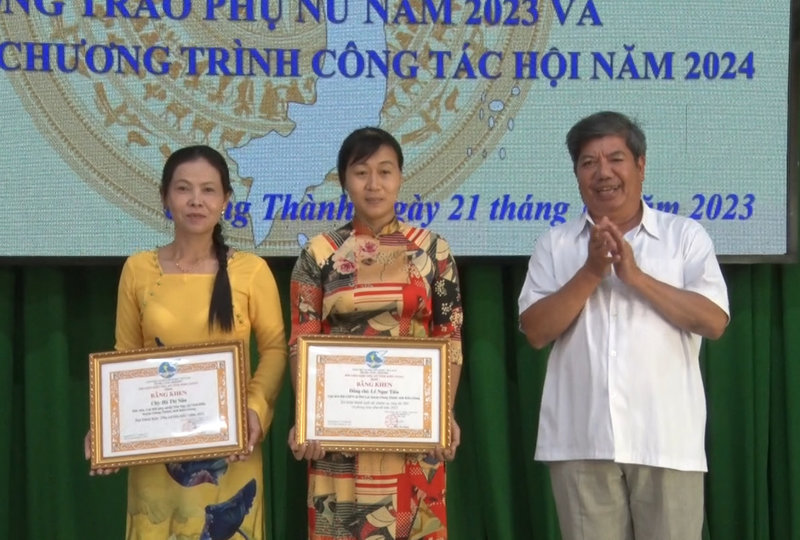 Dịp này, Trung ương Hội LHPN Việt Nam tặng bằng khen cho 02 tập thể đã có thành tích xuất sắc trong thực hiện phong trào thi đua và nhiệm vụ công tác hội năm 2023. Hội LHPN tỉnh tặng bằng khen cho 01 tập thể và 03 cá nhân; Hội LHPN huyện tặng giấy khen cho 06 tập thể và 11 cá nhân có thành tích hoàn thành xuất sắc nhiệm vụ công tác hội và phong trào phụ nữ năm 2023./.
