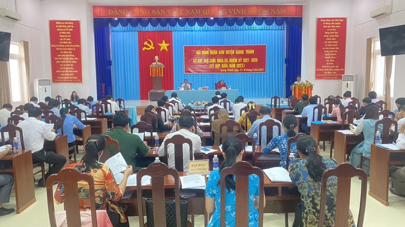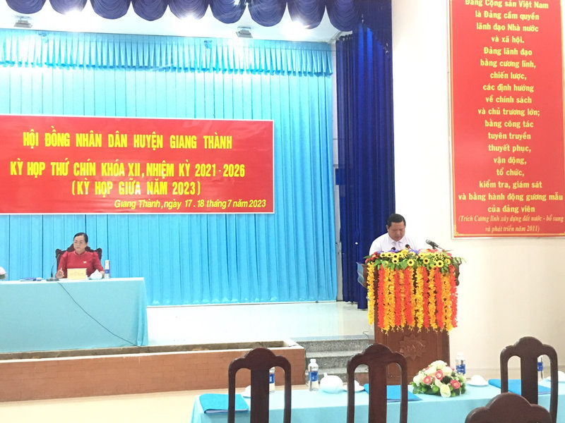 Theo chương trình kỳ họp, Thường trực HĐND huyện báo cáo kết quả hoạt động của HĐND hai cấp 06 tháng đầu năm 2023, chương trình công tác 06 tháng cuối năm 2023. UBND huyện thông qua các báo cáo: (1) Báo cáo tình hình kinh tế - xã hội huyện Giang Thành 06 tháng đầu năm 2023, phương hướng, nhiệm vụ 06 tháng cuối năm 2023. (2) Báo cáo tình hình đầu tư công 06 tháng đầu năm 2023, nhiệm vụ 06 tháng cuối năm 2023. (3) Báo cáo tình hình thu - chi ngân sách nhà nước 06 tháng đầu năm 2023, nhiệm vụ 06 tháng cuối năm 2023.