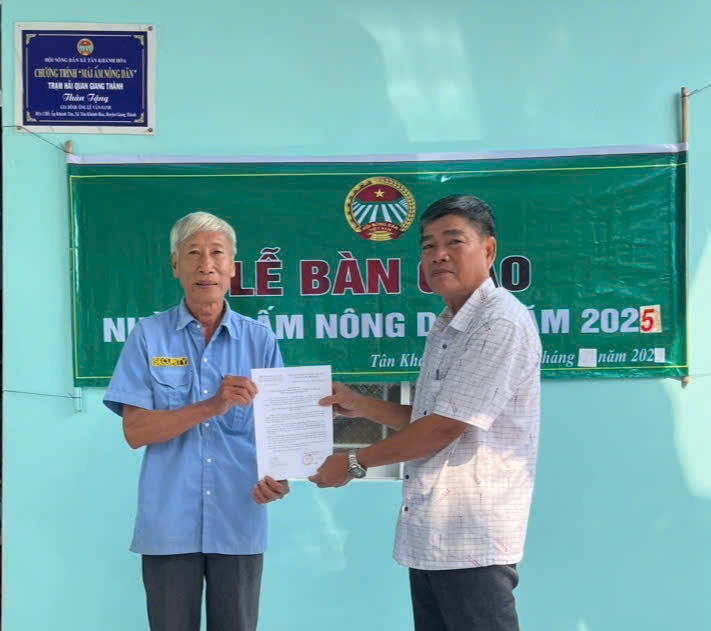 Thưc hiện chủ trương của Đảng uỷ về việc giao Ủy ban MTTQ Viêt Nam xã phối hợp Hội nông dân xã khảo sát nhà đại đoàn kết, nhà mái ấm nông dân để làm cơ sở xây dựng tiêu chí Thị trấn Tân Khánh Hòa. Căn cứ vào tình hình thực hiện nhiệm vụ năm 2025 của BCH Hội Nông dân xã, trong đó có tiêu chí vận động cất nhà “Mái ấm nông dân” cho hội viên có hoàn cảnh khó khăn.