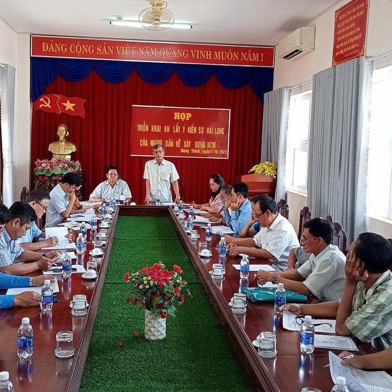 Chiều ngày 17/10/2022, Ban Thường trực Ủy ban Mặt trận Tổ quốc Việt Nam huyện Giang Thành tổ chức lấy ý kiến góp ý Báo cáo kết quả xây dựng nông thôn mới, gắn với triển khai Kế hoạch tổ chức lấy ý kiến sự hài lòng của người dân về kết quả xây dựng nông thôn mới xã Vĩnh Điều.
