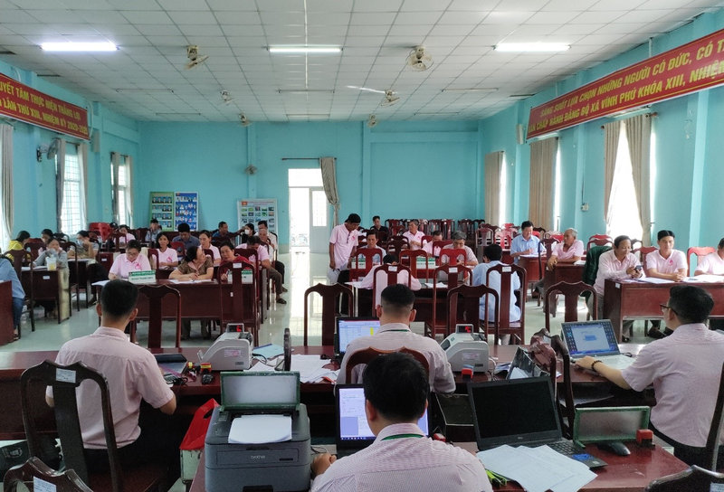 Quang cảnh buổi giao dịch xã của NHCSXH huyện