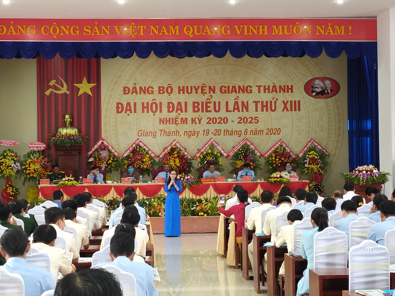Đại hội đại biểu Đảng bộ huyện Giang Thành lần thứ XIII đã tiến hành bầu Ban chấp hành Đảng bộ huyện khóa XIII, nhiệm kỳ 2020-2025 gồm 38 đồng chí; Ban chấp hành khóa XIII cũng họp phiên thứ nhất bầu Ban thường vụ Huyện ủy, bầu các phó Bí thư, bầu Ủy ban kiểm tra và Chủ nhiệm ủy ban kiểm tra Huyện ủy.