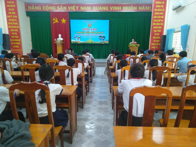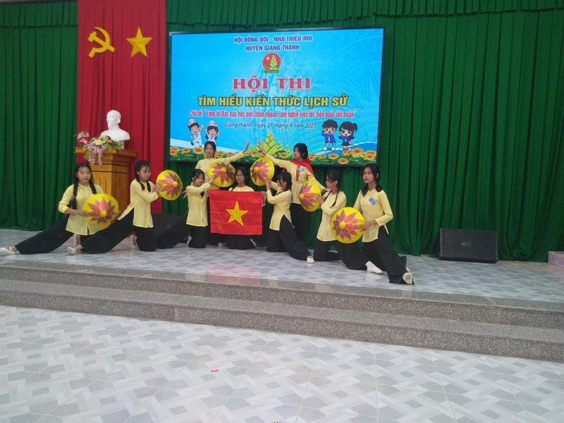 Sáng 21/4/2023, Tại hội trường Phòng Giáo dục huyện, Nhà Thiếu nhi huyện Giang Thành tổ chức Hội thi tìm hiểu kiến thức lịch sử Việt Nam với chủ đề “Vâng lời Bác dạy, học giỏi chăm ngoan, làm nghìn việc tốt, tiến bước lên Đoàn” cho các em là đội viên, học sinh đang học tập, sinh hoạt tại các trường Tiểu học và THCS trên toàn huyện.