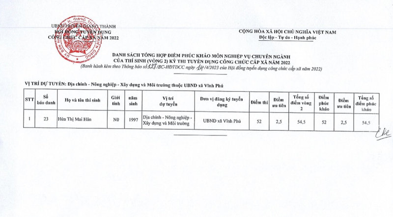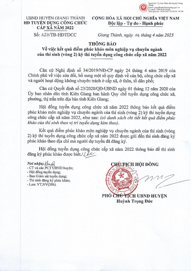 aA Xây dựng chính quyền Thông báo kết quả phúc khảo kỳ thi tuyển công chức cấp xã 14/04/2023, 13:41 Tập tin đính kèm:127.TB-UBND_0001.signed.pdf Quay về Chia sẻ Z Copy link thành công Tin khác Trung tâm Y tế huyện Giang Thành tăng cường vai trò "Người gác cổng" của Trạm Y tế các xã Xây dựng chính quyền 15/07/2024 Ủy ban Mặt trận Tổ quốc Việt Nam huyện Giang Thành Đại hội đại biểu lần thứ IV, nhiệm kỳ 2024 - 2029 Xây dựng chính quyền 28/06/2024 UBND huyện Giang Thành triển khai quyết định về công tác tổ chức cán bộ Xây dựng chính quyền 28/06/2024 Đại biểu HĐND 03 cấp tiếp xúc cử tri trước kỳ họp thường lệ giữa năm tại UBND xã Phú Lợi huyện Giang Thành Xây dựng chính quyền 14/06/2024 GIANG THÀNH KHAI GIẢNG LỚP SƠ CẤP LÝ LUẬN CHÍNH TRỊ KHÓA XV NĂM 2024 Xây dựng chính quyền 05/06/2024 Ban Thường Vụ Huyện ủy làm việc với Ban Thường Trực Ủy ban Mặt Trận Tổ quốc Việt Nam huyện về công tác chuẩn bị Đại hội đại biểu Mặt Trận Tổ quốc Việt Nam huyện nhiệm kỳ 2024-2029 Xây dựng chính quyền 05/06/2024 Giang Thành tổ chức Hội thi Bí thư chi bộ giỏi năm 2024 Xây dựng chính quyền 17/04/2024 Ủy ban Mặt trận Tổ quốc Việt Nam xã Tân Khánh Hòa huyện Giang Thành Đại hội lần thứ XII, nhiệm kỳ 2024 - 2029 Xây dựng chính quyền 13/03/2024 Giang Thành tập huấn, bồi dưỡng kiến thức pháp luật về nghiệp vụ công tác xử lý vi phạm hành chính năm 2024 Xây dựng chính quyền 13/03/2024 Huyện Giang Thành khai giảng lớp bồi dưỡng nhận thức về Đảng đợt II năm 2024 Xây dựng chính quyền 12/03/2024 /thong-bao-ket-qua-phuc-khao-ky-thi-tuyen-cong-chuc-cap-xa