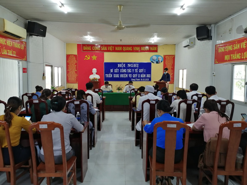 Tại hội nghị các đại biểu đã được nghe báo cáo kết quả thực hiện công tác y tế quí I với những kết quả nổi bật như: Hoạt động khám chữa bệnh được đảm bảo từ huyện đến cơ sở, số lượt khám và điều trị 13.864 lượt đạt 25,2% so với kế hoạch năm (Trong đó khám BHYT là 2.180 lượt, nội trú 243 lượt); Công suất sử dụng giường bệnh đạt 32.9%; Số lượt bệnh nhân chuyển tuyến nội trú là 44 lượt. Tỷ lệ bệnh nhân nội trú điều trị khỏi đỡ giảm đạt 74.4%. Số ngày điều trị bình quân 4.87 ngày/ 1 cas nội trú.; Công tác cung ứng thuốc, hóa chất, Vật tư y tế vắc xin được đảm bảo, Quản lý và bảo quản kho thuốc chặt chẽ; Công tác phòng, chống dịch Covid-19: Từ ngày 01/01 đến ngày 28/02/2022 ghi nhận: 94 trường hợp mắc Covid-19; Thực hiện test nhanh không thực hiện PCR: 152 trường hợp; Cách ly tại nhà: 251 trường hợp; Điều trị tại nhà: 144 trường hợp; Chuyển cơ sở thu dung: 102 trường hợp; Tự theo dõi sức khỏe 760 trường hợp; Công tác chỉ đạo tuyến của các chương trình mục tiêu quốc gia được thực hiện thường xuyên và liên tục qua đó nhìn chung các chương trình cơ bản đạt theo tiến độ đề ra.