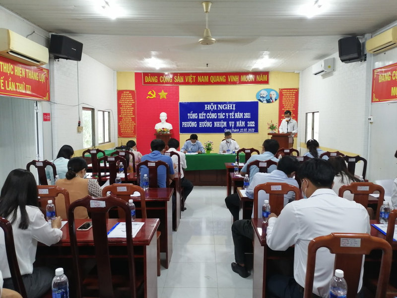 Sáng ngày 22/02/2022, Trung tâm Y tế Giang Thành tổ chức hội nghị tổng kết công tác Y tế năm 2021 và triển khai phương hướng nhiệm vụ năm 2022. Dự hội nghị có Đ/c Huỳnh Trọng Đức – Huyện ủy viên – Phó Chủ tịch UBND huyện; Đại diện Bảo hiểm xã hội huyện, Ban Giám đốc Trung tâm Y tế và lãnh đạo các Khoa, Phòng và Trạm Y tế cùng tham dự. Trong năm 2021, dưới sự lãnh đạo, chỉ đạo của Sở Y tế; Huyện ủy - UBND huyện Giang Thành về công tác chăm sóc, bảo vệ sức khỏe cho nhân dân trên địa bàn huyện đã đạt được nhiều kết quả đáng ghi nhận nổi bật là công tác phòng chống dịch bệnh COVID-19, đơn vị đã tham mưu cho Trung tâm chỉ huy phòng chống dịch huyện kiện toàn nhân sự phòng chống dịch ngay từ đầu năm. Chỉ đạo các Trạm Y tế xã thực hiện công tác tham mưu cho Ban Chỉ đạo các xã hoàn thiện các văn bản chỉ đạo về công tác phòng chống dịch trên địa bàn xã quản lý. Trung tâm Y tế cũng đã chủ động thành lập 2 đội cơ động phòng chống dịch, phân công cán bộ trực 24/24 tại phòng trực dịch, rà soát vật tư, hóa chất, thuốc phòng chống dịch để thực hiện mua sắm, bổ sung đáp ứng kịp thời khi có dịch xảy ra. Theo báo cáo của Trung tâm Y tế, trong năm 2021 thực hiện khai báo y tế: 10.660 trường hợp; cách ly tập trung: 943 trường hợp; cách ly tại nhà: 2351 trường hợp; tự theo dõi sức khỏe: 7.366 trường hợp; Triển khai thí điểm cách ly F1 tại nhà trong đó: 364 trường hợp; Công tác lấy mẫu xét nghiệm sàng lọc cộng đồng được 80.936 lượt người.