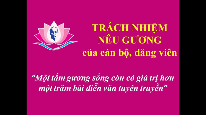 Trong cuộc đời hoạt động của mình, Chủ tịch Hồ Chí Minh đã có gần 500 lần viết và luận giải về vấn đề “gương mẫu” ở những khía cạnh khác nhau. Người luôn “đòi hỏi mỗi cán bộ phải làm gương mẫu” và chỉ ra những nội hàm của “gương mẫu”. Người chỉ rõ: “Người đảng viên ở bất kỳ đâu, bất kỳ làm việc gì, bất kỳ địa vị nào và hoàn cảnh nào, cũng phải luôn luôn: Đặt lợi ích của Tổ quốc, của nhân dân lên trên hết, trước hết. Phải gần gũi dân chúng, thương yêu, giúp đỡ dân chúng, tổ chức và lãnh đạo dân chúng. Phải giữ vững đạo đức cách mệnh, là chí công vô tư”.
