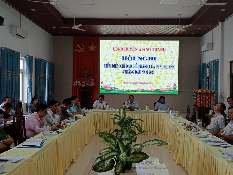 Báo cáo kiểm điểm công tác chỉ đạo, điều hành UBND huyện 6 tháng đầu năm 2023 do Chánh Văn phòng HĐND-UBND huyện trình bày tại Hội nghị nêu rõ: Trong 6 tháng đầu năm 2023, UBND huyện đã tổ chức thực hiện nghiêm túc Quy chế làm việc, ban hành quyết định phân công nhiệm vụ cụ thể cho các phòng, cơ quan chuyên môn thuộc UBND huyện và tổ chức thực hiện đảm bảo hoàn thành các chỉ tiêu phát triển kinh tế - xã hội năm 2023 theo Nghị quyết của Huyện ủy và HĐND huyện. Tổ chức chỉ đạo, điều hành đảm bảo sự lãnh đạo của Đảng, phát huy vai trò tập thể gắn với đề cao trách nhiệm cá nhân của từng thành viên UBND huyện.