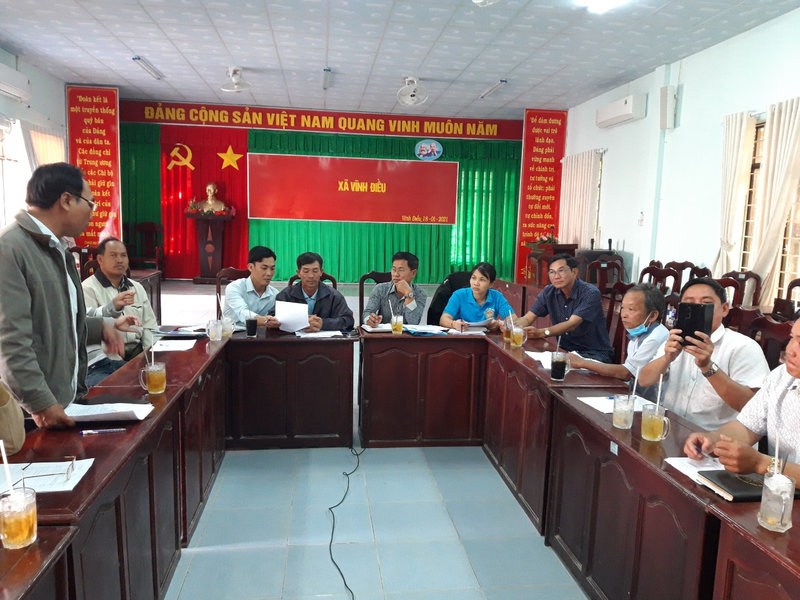 Địa bàn xã Vĩnh Điều với diện tích tự nhiên 10.272,51ha, 6 ấp với 41 tổ NDTQ; 02 hợp tác xã (HTX) và 26 Tổ hợp tác (THT). UBND xã yêu cầu Ban lãnh đạo ấp cùng HTX và các THT bố trí họp dân tuyên truyền, phổ biến nội dung các dự án và vận động nông dân đăng ký tham gia, tổng hợp danh sách nông dân đăng ký các mô hình và dự án đảm bảo hiệu quả.