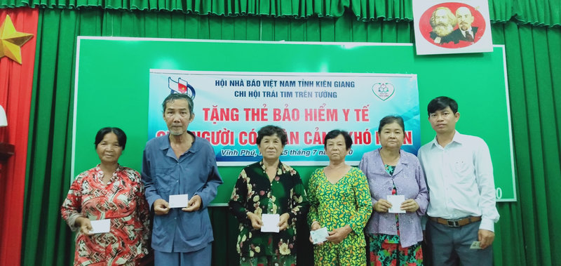 Qua đó, Hội Nhà báo tỉnh Kiên Giang và Chi hội Trái tim TPHCM trên tường tặng 20 thẻ bảo hiểm y tế cho người có hoàn cảnh khó khăn, thời hạn sử dụng thẻ là 1 năm với số tiền trên 16 triệu đồng do Chi hội Trái tim TPHCM tài trợ. Đây là việc làm nhân văn sâu sắc của Hội Nhà báo tỉnh Kiên Giang và Chi hội Trái tim TPHCM trên tường; thể hiện sự đồng cảm, chia sẻ khó khăn với người dân có hoàn cảnh khó khăn, tiếp thêm động lực nhằm động viên người dân an tâm phát triển kinh tế hộ gia đình.